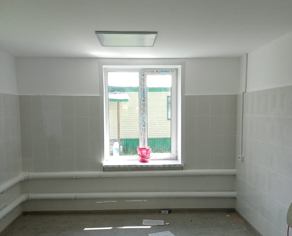 В селе Хабарное Новотроицка создание комфортных условий для персонала и пациентов идет полным ходом. Строители уже заменили окна, канализацию, залили полы. Сейчас идет отделка внутренних помещений. Работы должны завершиться в конце июня.