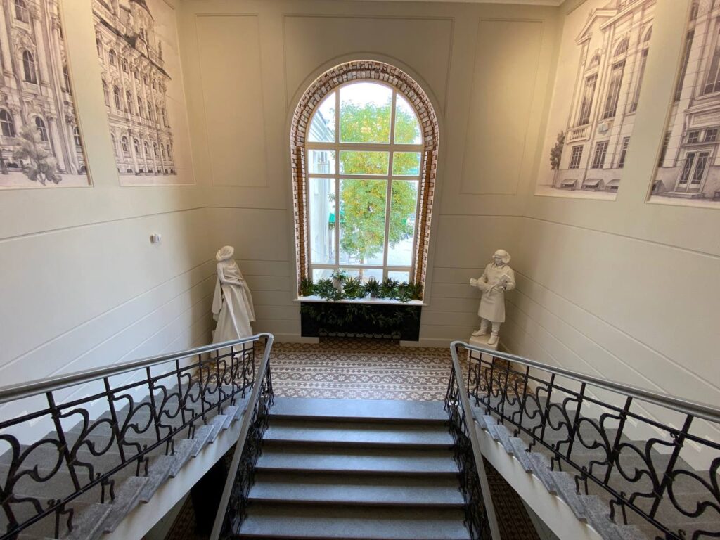 Директор музея ИЗО Юрий Комлев отметил: зданию, в котором разместили музей «Эрмитаж-Евразия» 110 лет. Здесь сохранили уникальную архитектуру, в которой совместили классицизм и модерн. Восстанавливать его пришлось буквально по крупицам, на реставрацию здания и создание музея ушло два года.