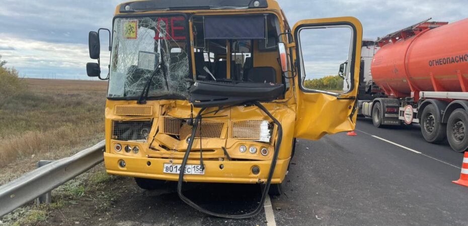 Детский автобус с 15 детьми и тренером направлялся из Сорочинска в Оренбург на соревнования. На трассе не доезжая несколько километров до Новосергиевки автобус столкнулся с автомобилем КамАЗ.