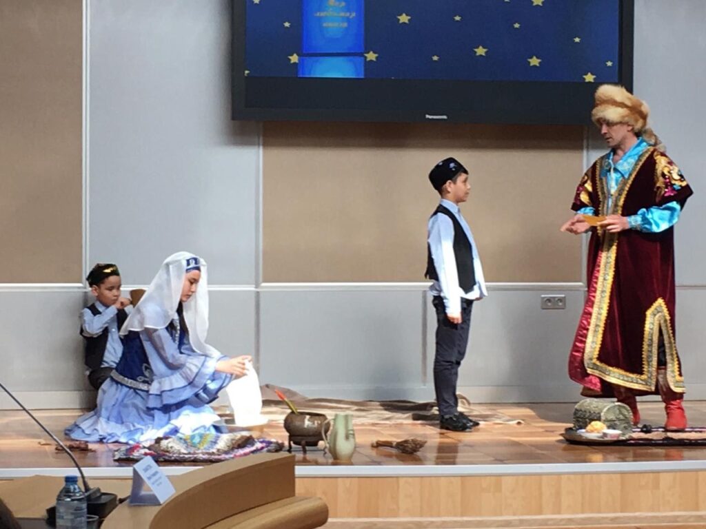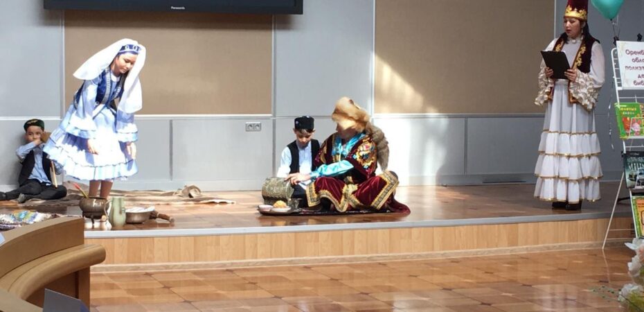 На фото: финал областного конкурса «Читающая семья Оренбуржья – 2021». Семья Якшигуловых представляет легенду «Лебяжка».
