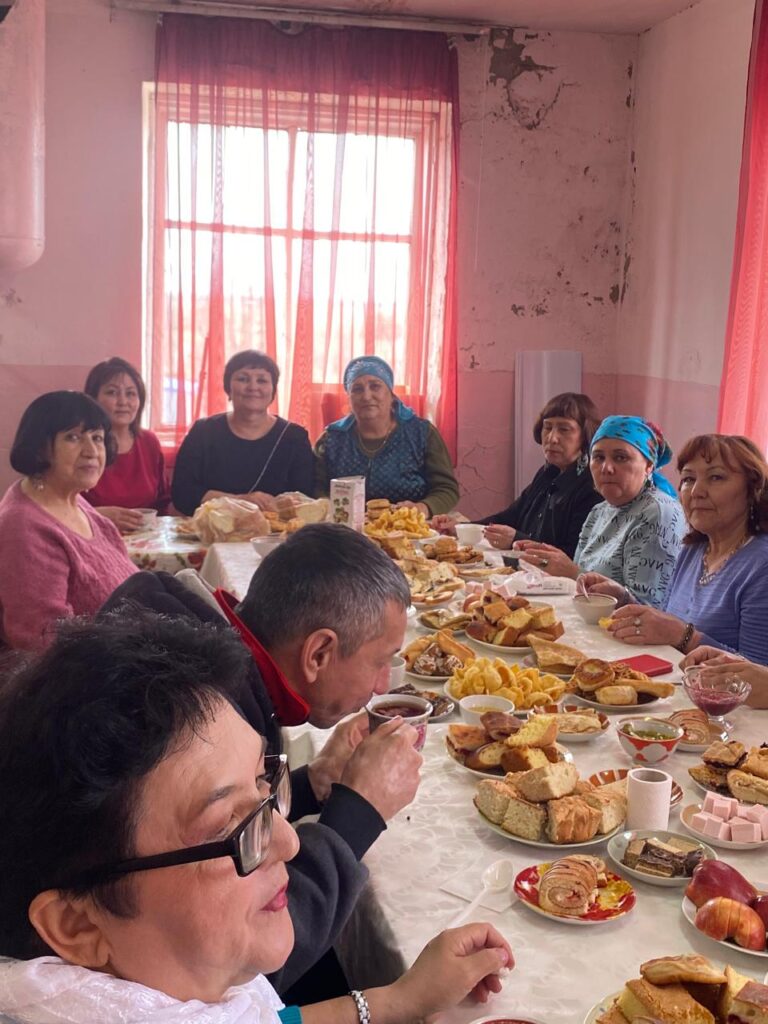 Закончилась встреча чаепитием в честь праздника Уразы-байрам, где за нарядным столом с разными вкусностями поговорили по душам, наметили планы.