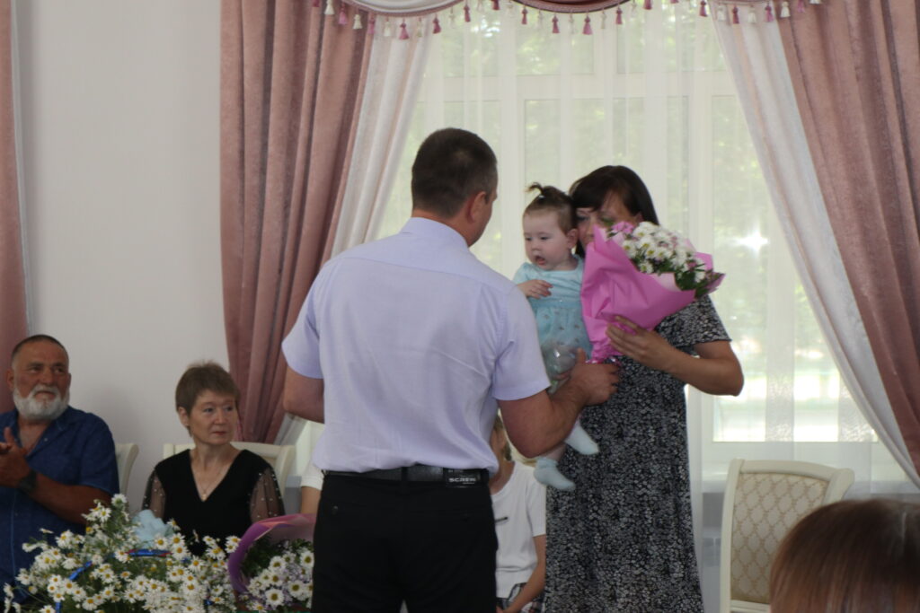 Особые слова признательности были в адрес Владимира и Галины Дёминых, которые воспитали пятерых детей, их сыновья посвятили жизнь служению Отечеству – они участники специальной военной операции, ветераны боевых действий.