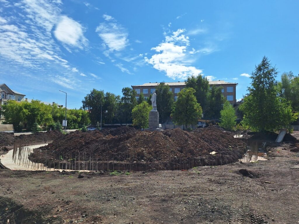 Секретарь местного отделения партии «Единая Россия» Марсель Солодкий вместе с депутатами городского Совета и областным парламентарием Валентином Купиновым проконтродировали благоустройство площади Ленина и прилегающей к ней улицы Советской. Строители возводят подпорные стены для укрепления грунта, предварительно убрав старую плитку, изношенное асфальтовое покрытие и плодородный слой земли, который будут в дальнейшем использовать для озеленения. Уже видна разбивка клумб, расположенных вокруг памятника. Ведется подготовка к прокладке освещения.