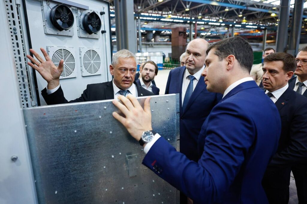 Евгений Солнцев вместе с министром промышленности и торговли России Антоном Алихановым посетили несколько отраслевых предприятий