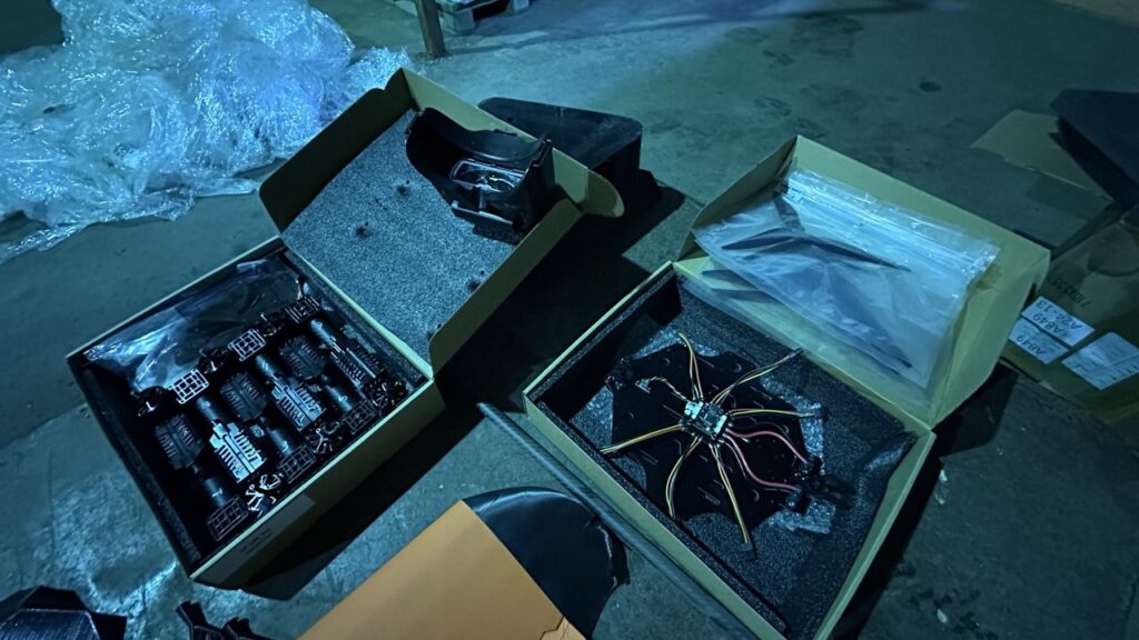 В ходе досмотра газели выявлены FPV-дроны (First-PersonView), оснащенные камерами для передачи изображения в режиме реального времени, в разобранном виде, а также два FPV-крыла «Ключ-Фортуна».