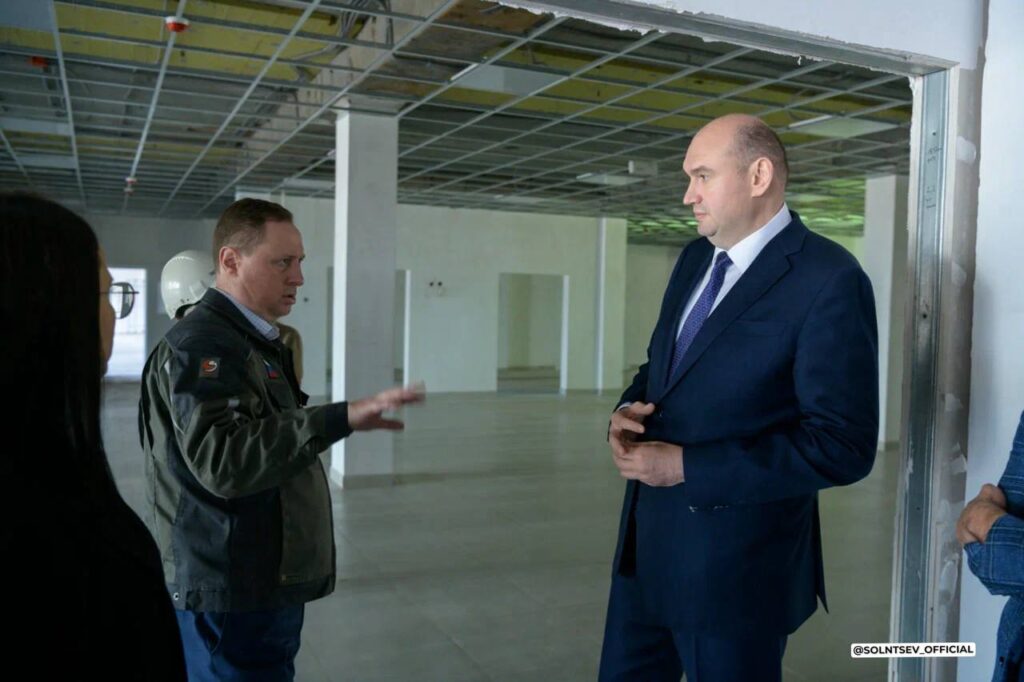 Губернатор Евгений Солнцев проверил ход строительства школы на улице Гаранькина