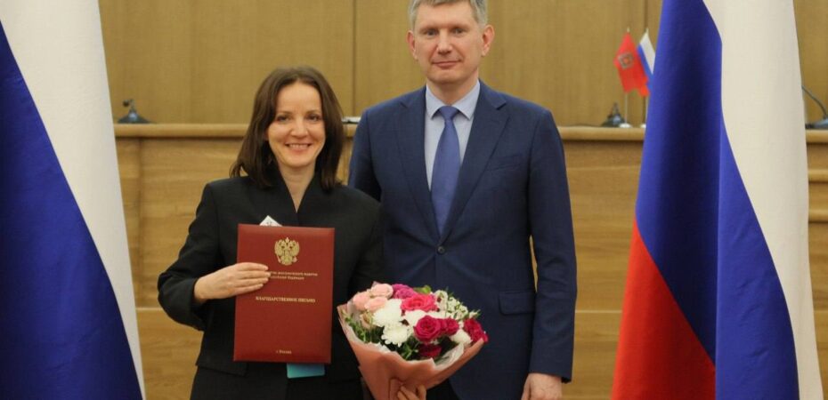 Министр экономического развития Российской Федерации Максим Решетников вручил Елене Здоровой благодарность «За сотрудничество и вклад в реализацию целей и задач Министерства экономического развития Российской Федерации».
