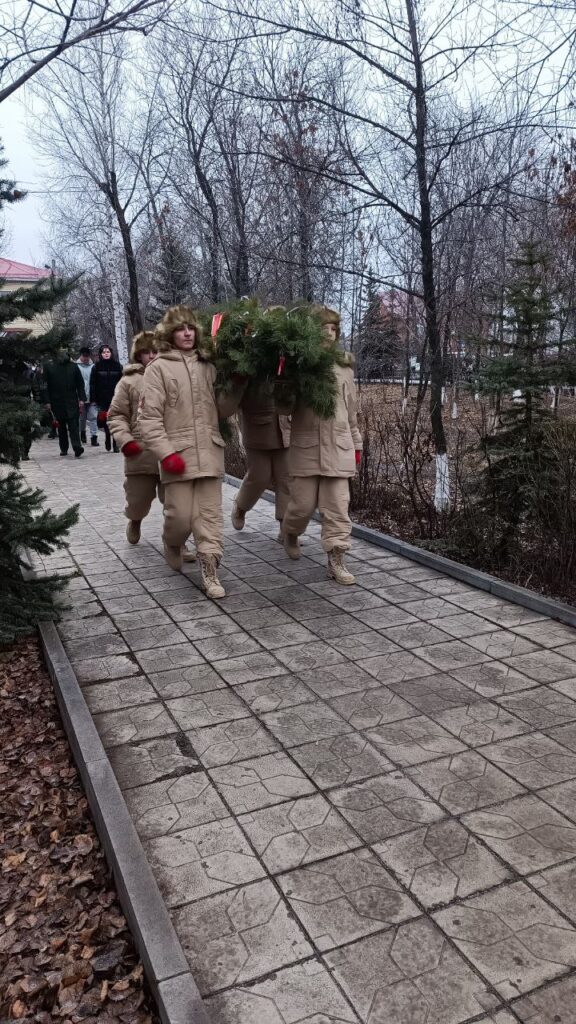 Минута молчания стала данью уважения тем, кто не вернулся с поля боя и до сих пор считается пропавшим без вести. Завершился митинг трогательной церемонией возложения гирлянды и цветов к памятнику и Вечному огню.