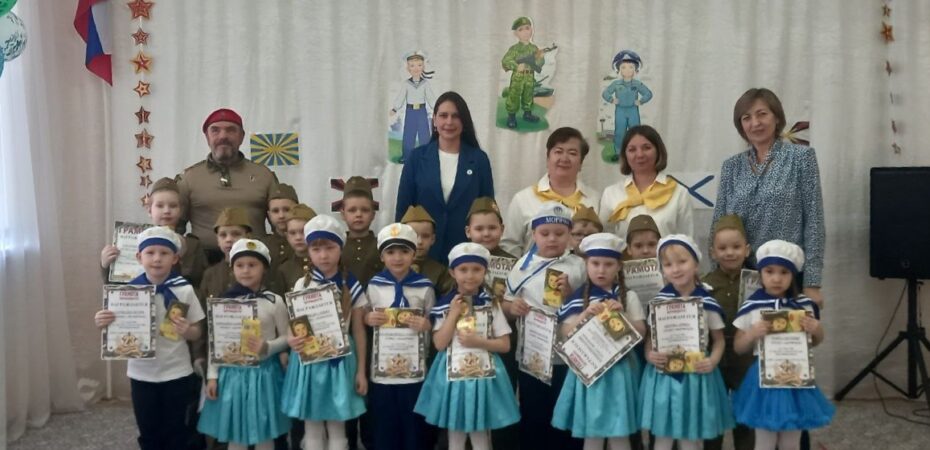 – Сначала прошёл смотр строя и песни, который открыла тренер-преподаватель Ляйсана Гафьятуллина, – рассказала заведующая Ольга Арбузова. – В смотре приняли участие подготовительная группа «Пехотинцы» под командованием Сергея Заварзина (воспитатель Ирина Иванова) и старшая группа «Морячки» под командованием Игоря Сурменко (воспитатель Оксана Широнина).