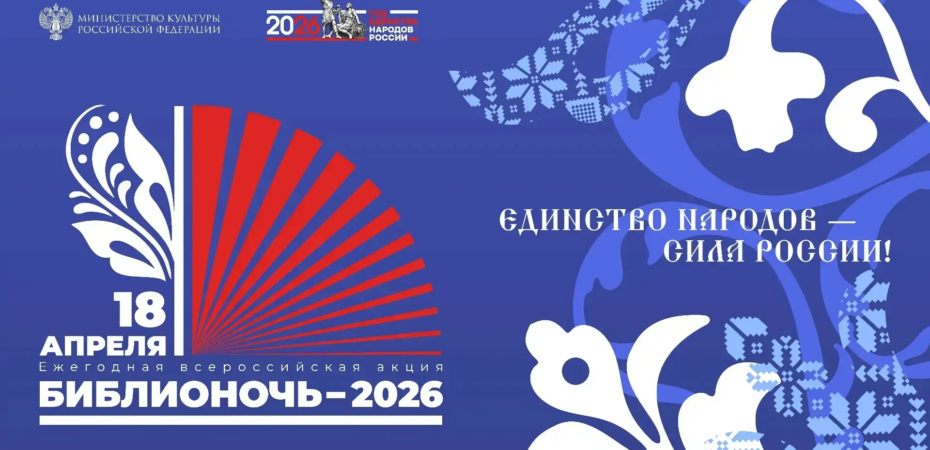 Ежегодная акция «Библионочь» в этом году пройдет в России уже в 15-й раз. 18 апреля библиотеки по всей стране представят читателям специальную программу. Лейтмотив юбилейной акции созвучен главной теме 2026 года – «Единство народов – сила России!».